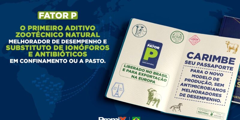 É nesse cenário que o Fator P, o primeiro aditivo zootécnico 100% natural da Premix, é a escala mais curta para uma pecuária com alta produtividade e sem antibióticos. Ele atua como melhorador desempenho, substituindo ionóforos e antibióticos, em confinamento ou a pasto.